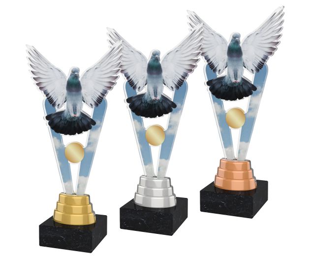 Akrylátová trofej. V ceně trofeje není zahrnuta cena štítku. Akrylátový motiv 0.6 cm. Držák motivu A-zlato, B-stříbro, C-bronz (možno vyměnit). Podstavec bílý nebo černý. Výšky trofejí jsou orientační. Oboustranný tisk.