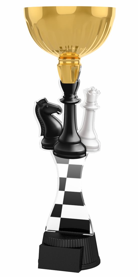 Akrylátová trofej. V ceně trofeje není zahrnuta cena štítku. Akrylátový motiv 0.6 cm. Zlatý kalich. Výšky trofejí jsou orientační. Oboustranný tisk.