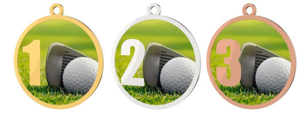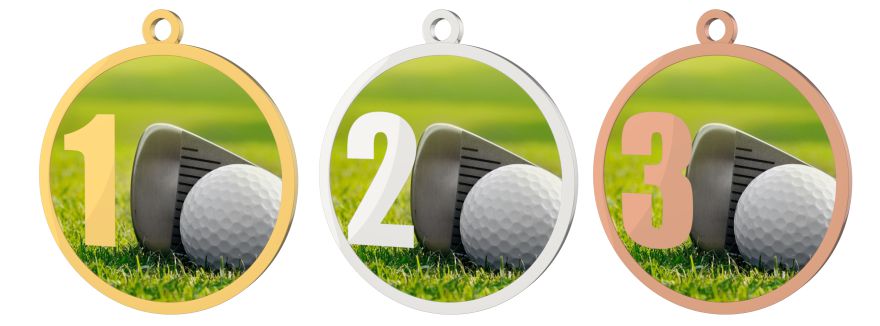 Medaile MDT0001M10 | Golf UV HQ tisk: cena s UV HQ tiskem, Barva: stříbro, Stuha: ST5