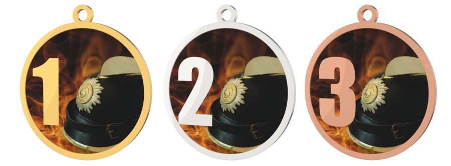 Medaile MDT0001M12 | Hasiči UV HQ tisk: cena s UV HQ tiskem, Barva: zlato, Stuha: ST5