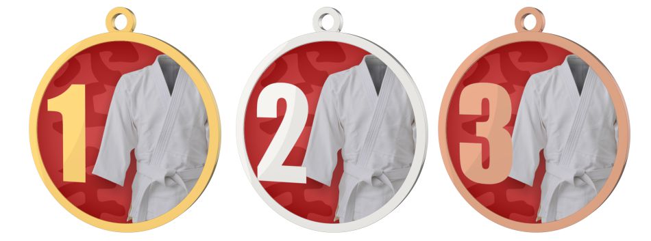 Kovová medaile s UVHQ potiskem a speciálním 3D lakem. Ceny medailí za 1 kus včetně stuhy.