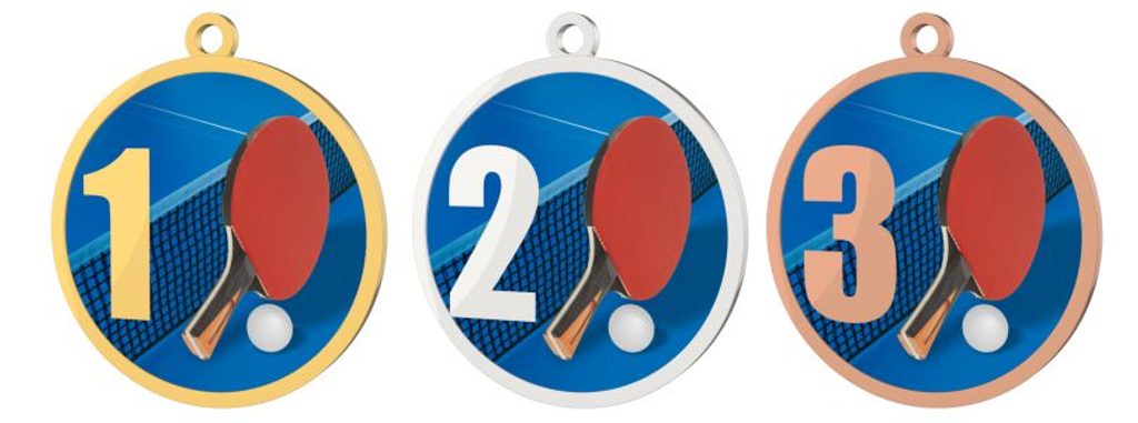 Medaile MDT0001M19 | Stolní tenis UV HQ tisk: cena s UV HQ tiskem, Barva: stříbro, Stuha: ST8