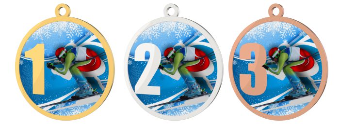 Medaile MDT0001M29 | Sjezdové lyžování UV HQ tisk: cena s UV HQ tiskem, Barva: stříbro, Stuha: ST10