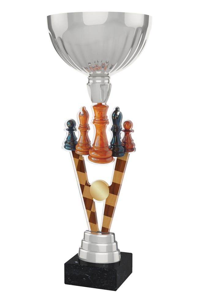 Akrylátová trofej. V ceně trofeje není zahrnuta cena štítku. Akrylátový motiv 0.6 cm. Držák motivu stříbro. Podstavec bílý nebo černý. Stříbrný kalich. Výšky trofejí jsou orientační. Oboustranný tisk.