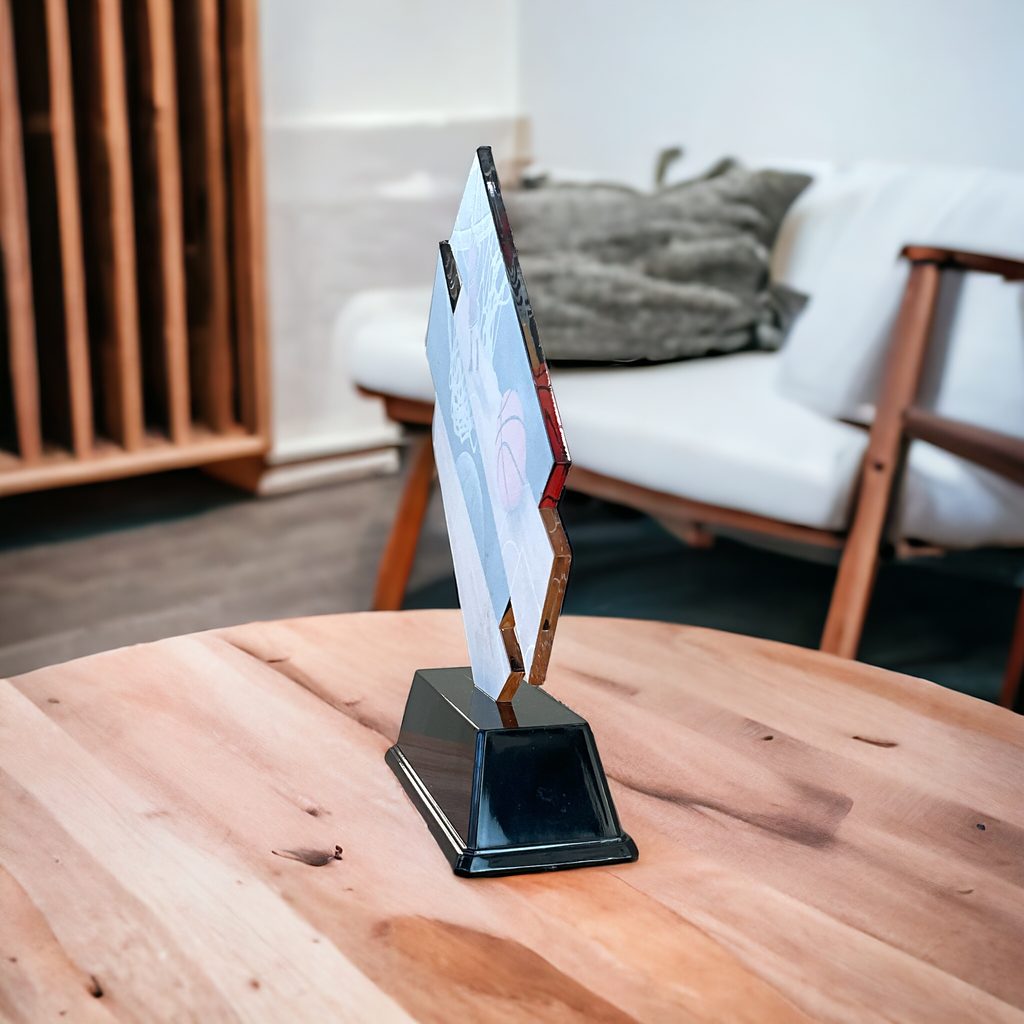 Akrylátová trofej. Oboustranný tisk. V ceně trofeje není zahrnuta cena štítku. Akrylátový motiv tloušťka 2 cm.