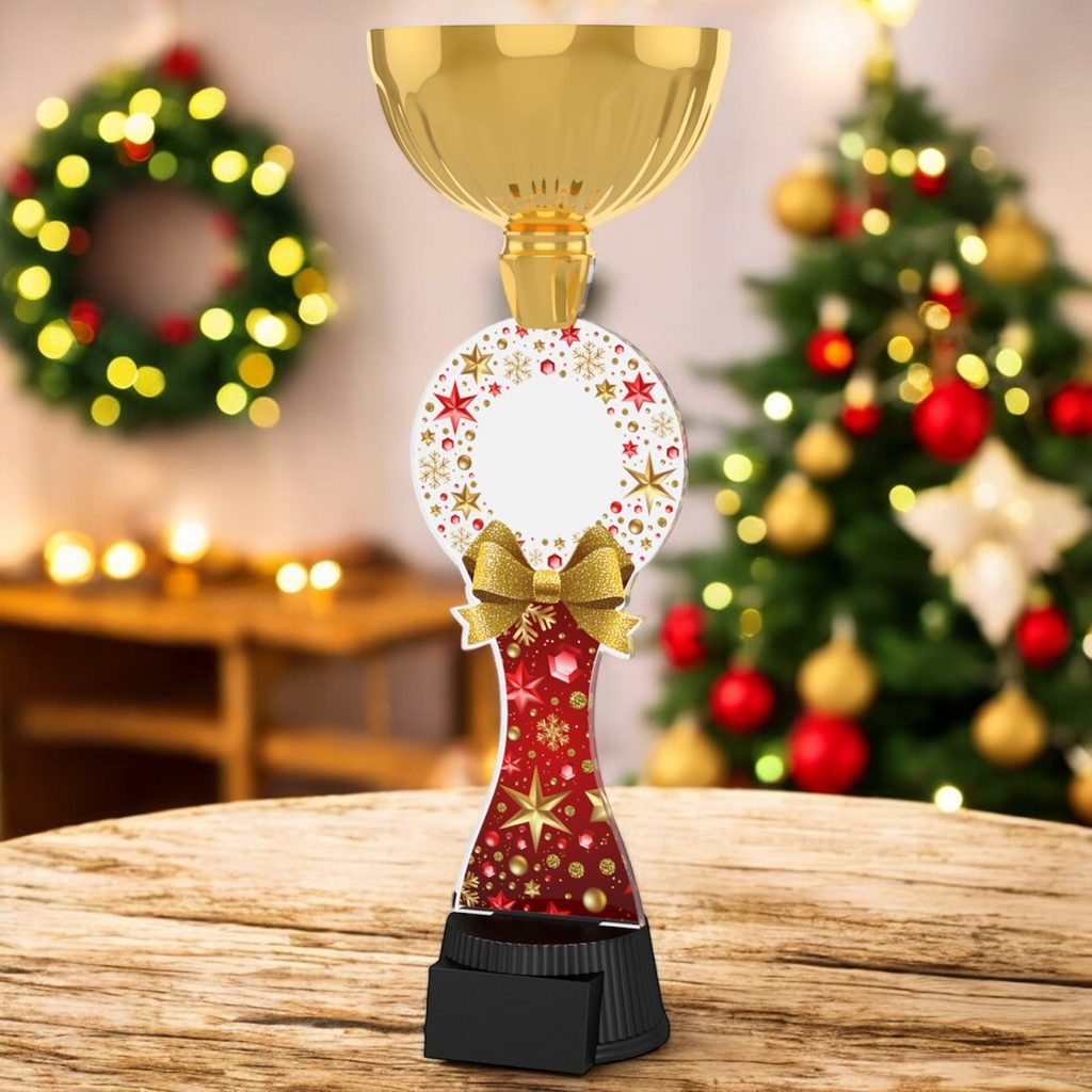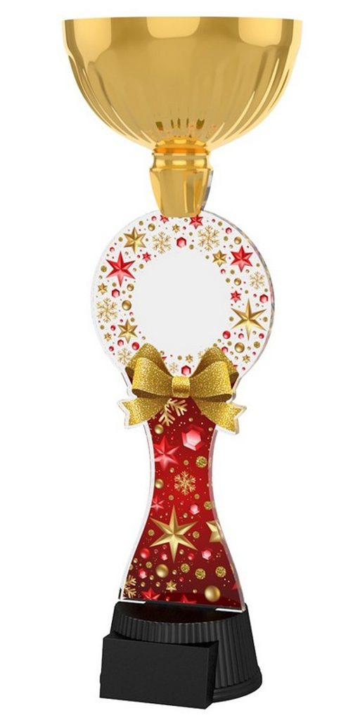 Akrylátová trofej. V ceně trofeje není zahrnuta cena štítku. Akrylátový motiv 0.6 cm. Zlatý kalich. Výšky trofejí jsou orientační. Oboustranný tisk.