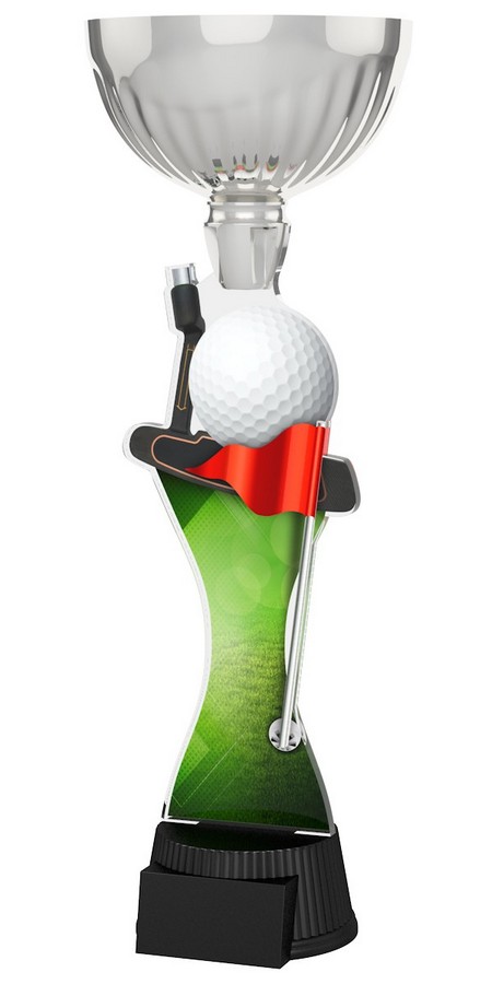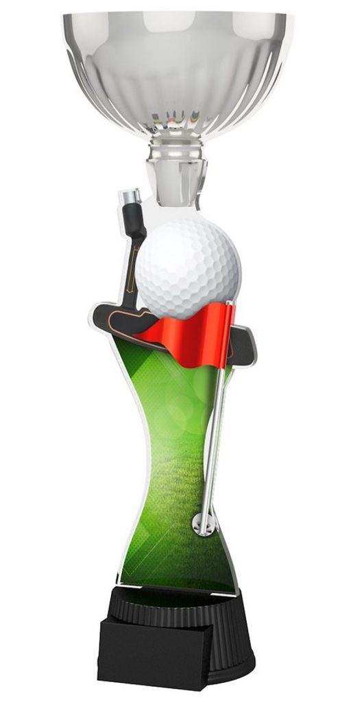 Akrylátová trofej. V ceně trofeje není zahrnuta cena štítku. Akrylátový motiv 0.6 cm. Stříbrný kalich. Výšky trofejí jsou orientační. Oboustranný tisk.
