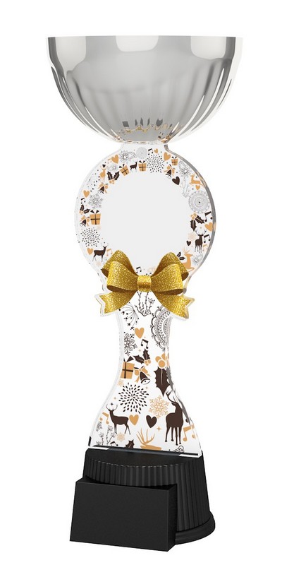 Akrylátová trofej. V ceně trofeje není zahrnuta cena štítku. Akrylátový motiv 0.6 cm. Stříbrný kalich. Výšky trofejí jsou orientační. Oboustranný tisk.