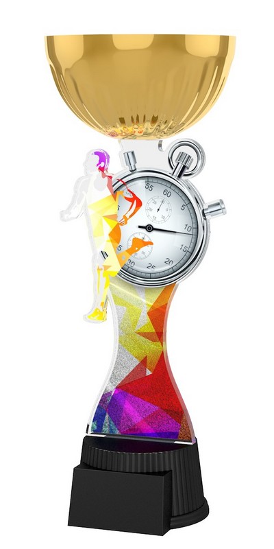 Akrylátová trofej. V ceně trofeje není zahrnuta cena štítku. Akrylátový motiv 0.6 cm. Zlatý kalich. Výšky trofejí jsou orientační. Oboustranný tisk.