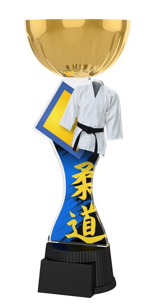Akrylátová trofej. V ceně trofeje není zahrnuta cena štítku. Akrylátový motiv 0.6 cm. Zlatý kalich. Výšky trofejí jsou orientační. Oboustranný tisk.