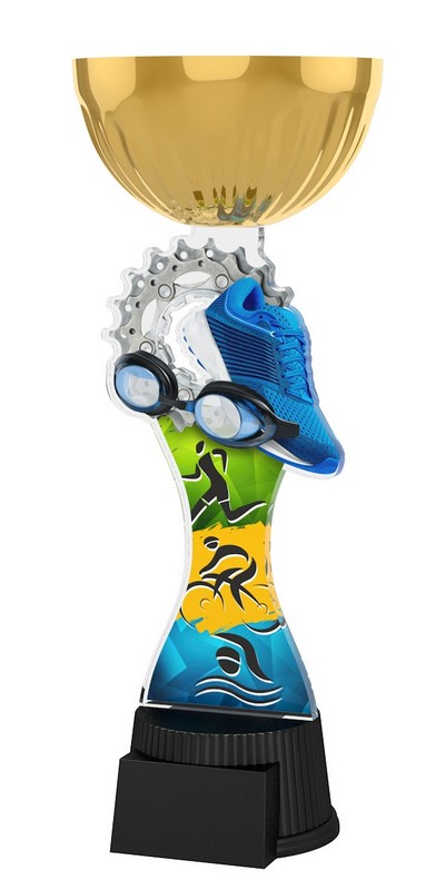 Akrylátová trofej. V ceně trofeje není zahrnuta cena štítku. Akrylátový motiv 0.6 cm. Zlatý kalich. Výšky trofejí jsou orientační. Oboustranný tisk.