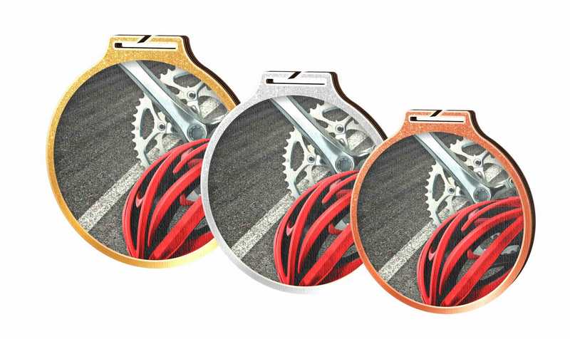 Dřevěná medaile s potiskem v barvě zlato 9cm - stříbro 8cm - bronz 7cm.