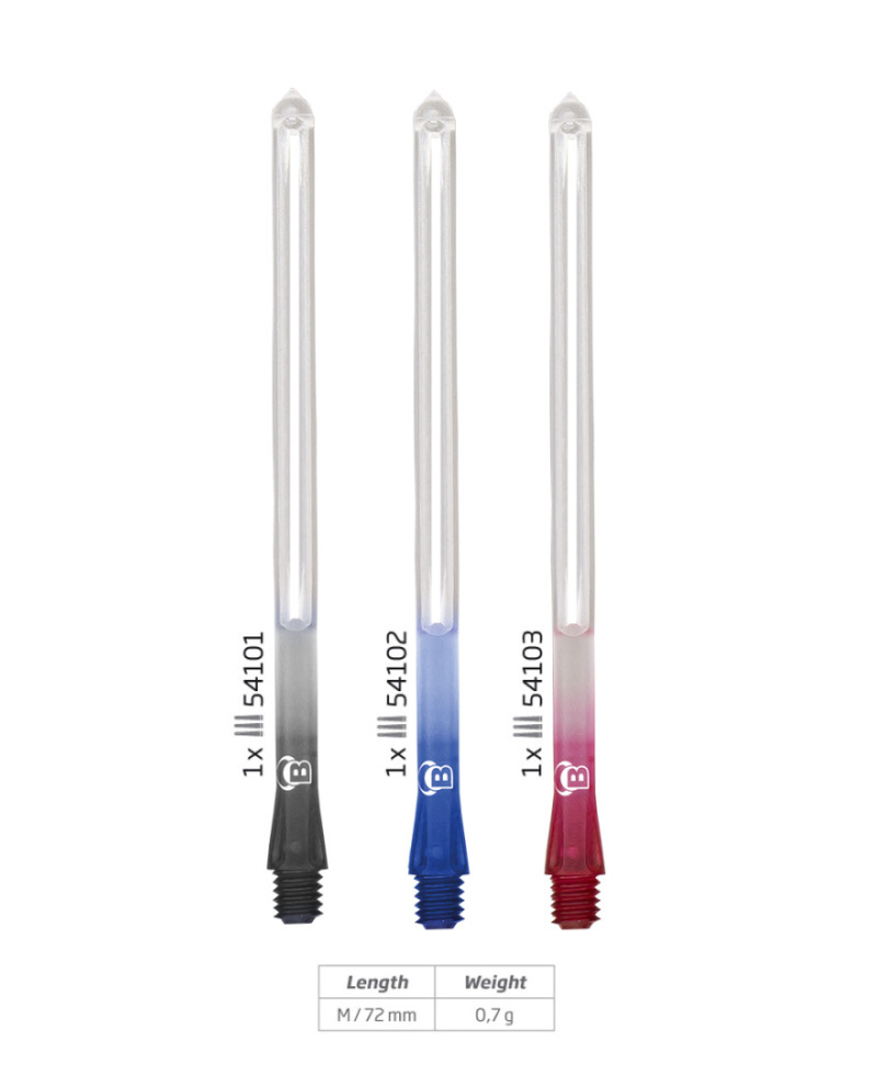 Polykarbonátové násadky s bočním umístěním letky. B-Grip Si jsou vytvořeny tak, aby letka zůstala v násadce stabilní a zároveň byla chráněna. Tyto dvoubarevné Si násadky jsou k dispozici v jedné délce a mají obvyklý 2BA závit.