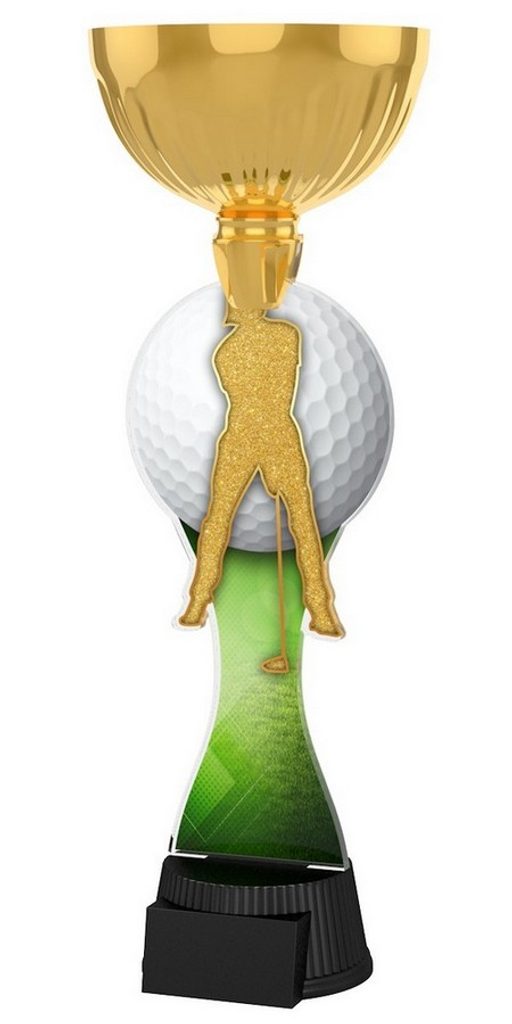 Akrylátová trofej. V ceně trofeje není zahrnuta cena štítku. Akrylátový motiv 0.6 cm. Zlatý kalich. Výšky trofejí jsou orientační. Oboustranný tisk.