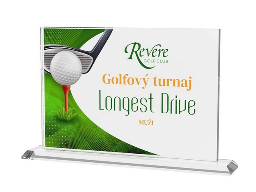 Skleněná trofej s UV HQ tiskem a akrylátovým zrcadlovým motivem. Motiv v ceně. Možnost laserového gravírování nebo UV HQ tisku.