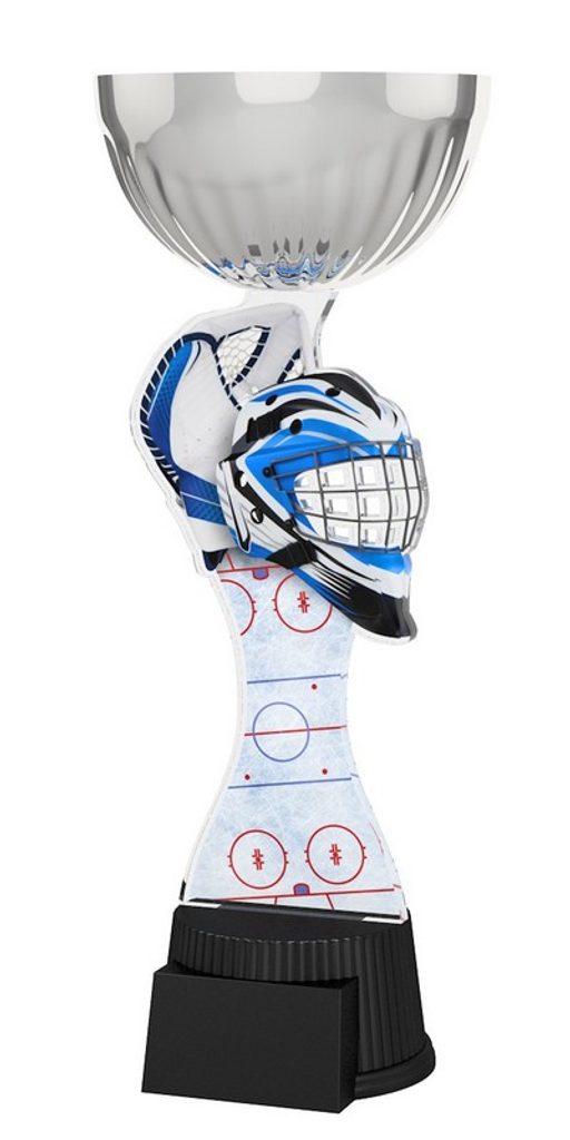 Akrylátová trofej. V ceně trofeje není zahrnuta cena štítku. Akrylátový motiv 0.6 cm. Stříbrný kalich. Výšky trofejí jsou orientační. Oboustranný tisk.