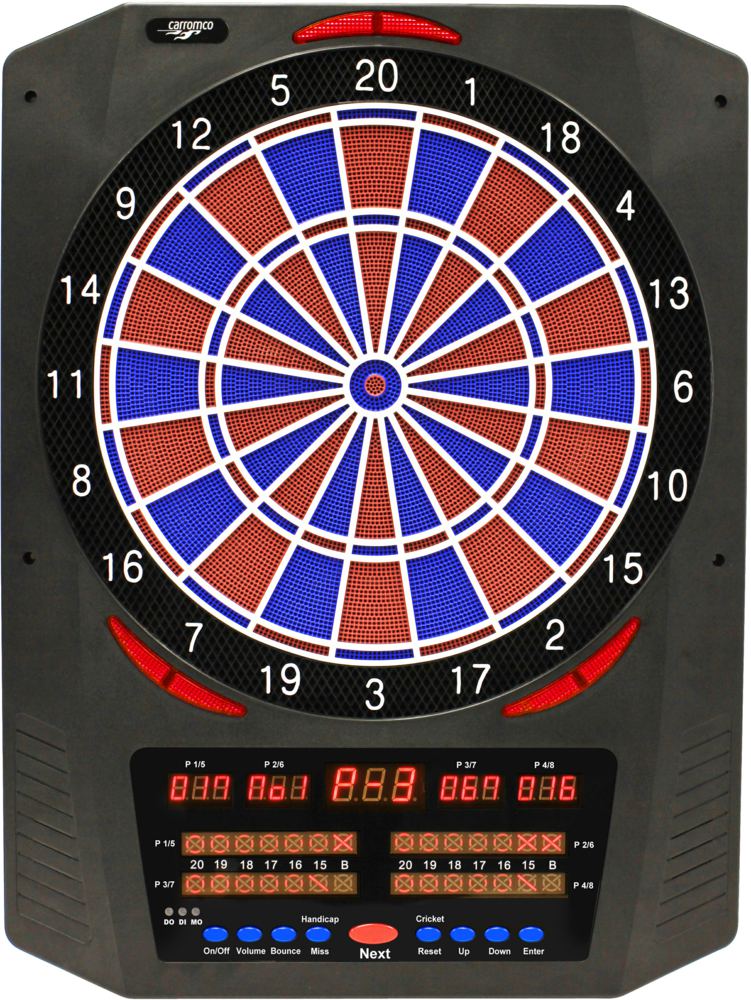 Poloprofesionální elektronický dvouřádkový terč pro zkušené hráče s deseti LED displeji je určen pro 1 - 16 hráčů