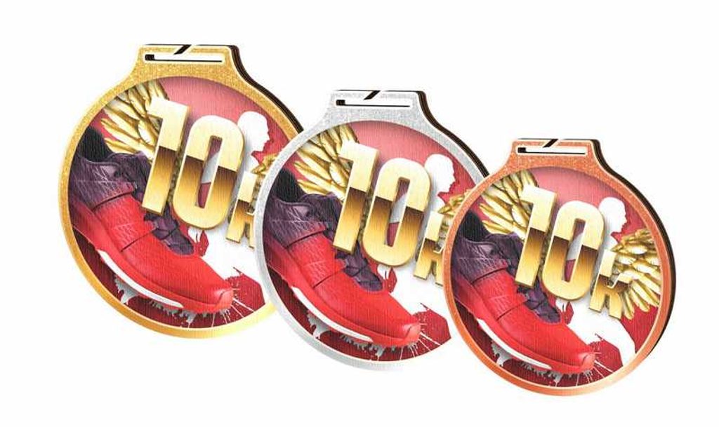 Dřevěná medaile s potiskem v barvě zlato/stříbro/bronz. Cena včetně stuhy.