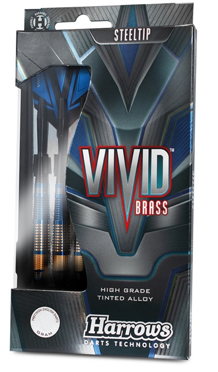 Steelové šipky Vivid jsou vrcholným modelem mosazných šipek Harrows. Tyto šipky, jak napovídá jejich název, jsou k dostání ve čtyřech zářivých barvách - modré, červené, zelené a černé. Pečlivě vysoustružená tělíčka šipek jsou povrchově upravená nitro-lakem a poté precizně vyfrézovaná. Takto vzniklý kontrast mědi a barevného laku upoutá pozornost každého hráče.